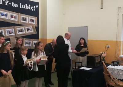 Zwyciężyli jak zawsze najlepsi. Tym razem w ocenie prac konkursowych brano pod uwagę walory językowo-estetyczne recenzji książki i jej „żywej” okładki w formie pracy graficznej. Dziękujemy uczestnikom – reprezentantom wszystkich szkół z terenu Gminy Skierniewice, których prace konkursowe zachwyciły swoją jakością i estetyką nie tylko członków jury, ale też widzów i czytelników oglądających wystawę w dniu podsumowania. Zwycięzcy konkursu otrzymali za swoje dzieła nagrody rzeczowe oraz dyplomy. Dziękujemy też uczniom naszej szkoły, którzy na okoliczność podsumowania konkursu przygotowali krótką część artystyczną. Swoją recytacją wierszy i śpiewem upamiętnili poetkę Wisławę Szymborską, której rok właśnie obchodzimy. Było więc uroczyście, artystycznie i satysfakcjonująco. Opiekunami wydarzenia były: p. A. Bartosińska i p. M. Korbeń.